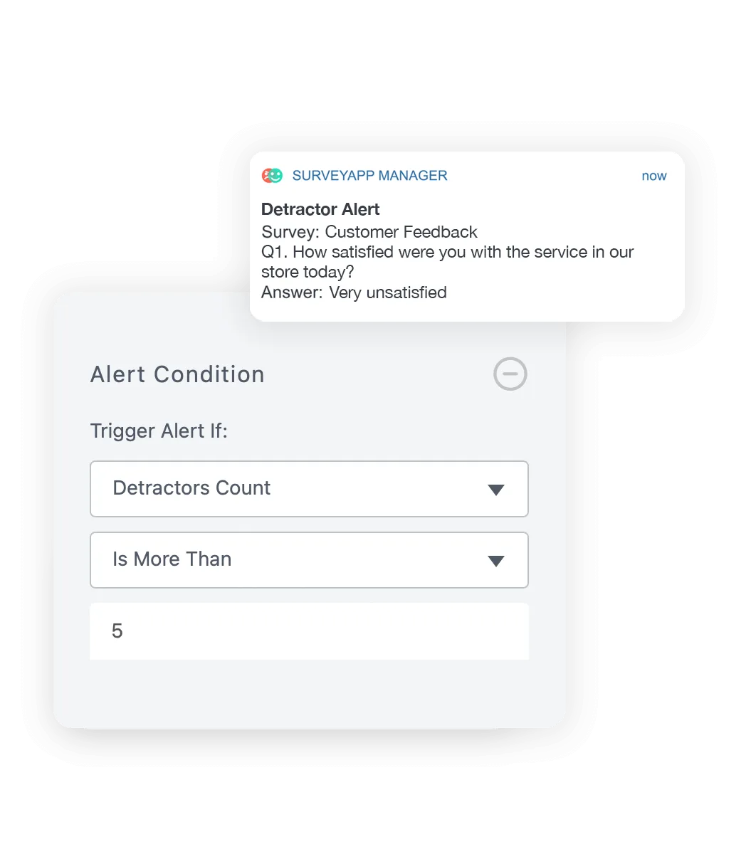 - Follow and act upon the latest survey data from your customers, as it arrives.