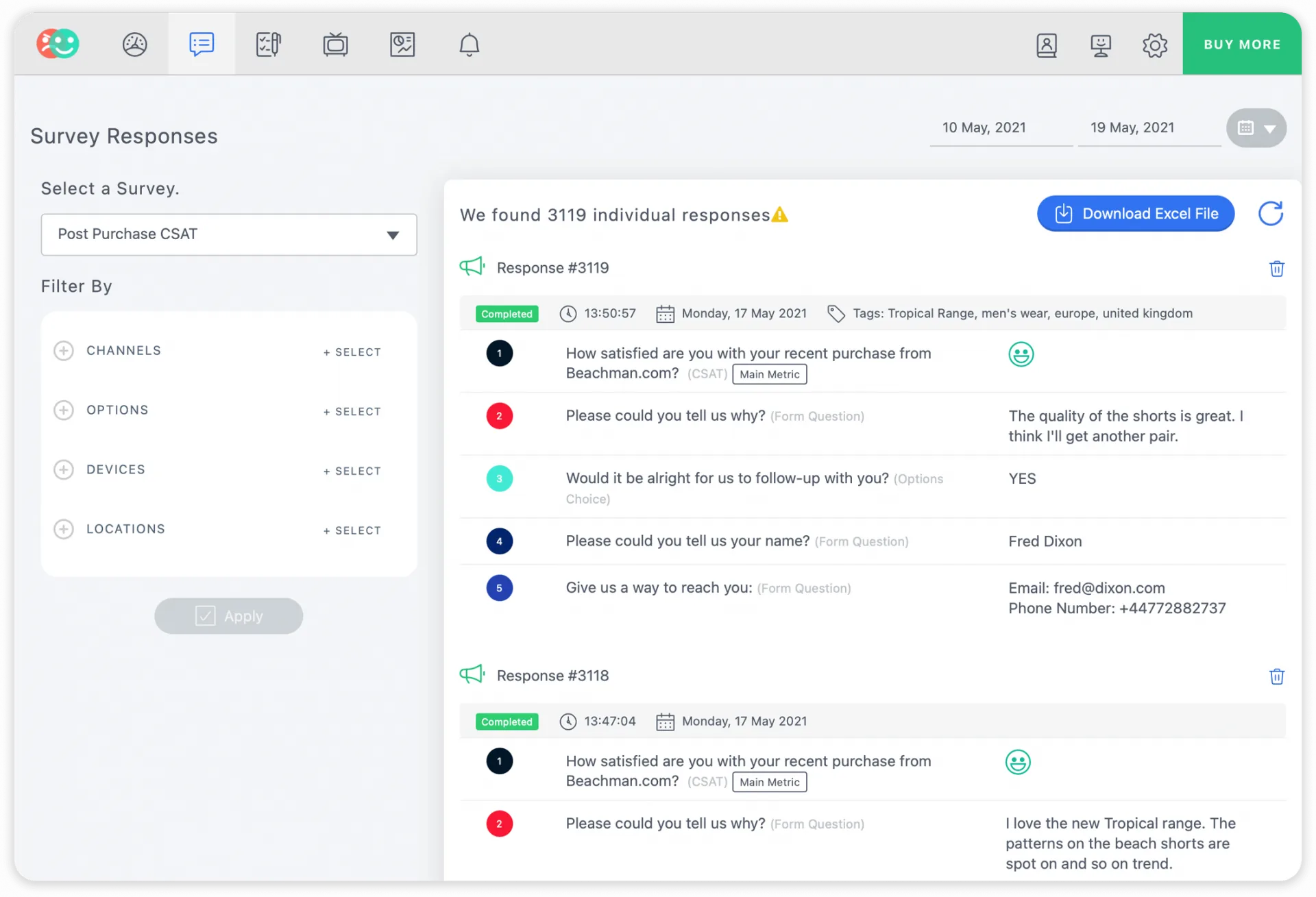 Ask CSAT questions to track how happy your customers are – and use Surveyapp’s detailed, visual insights to inspire even better experiences.
