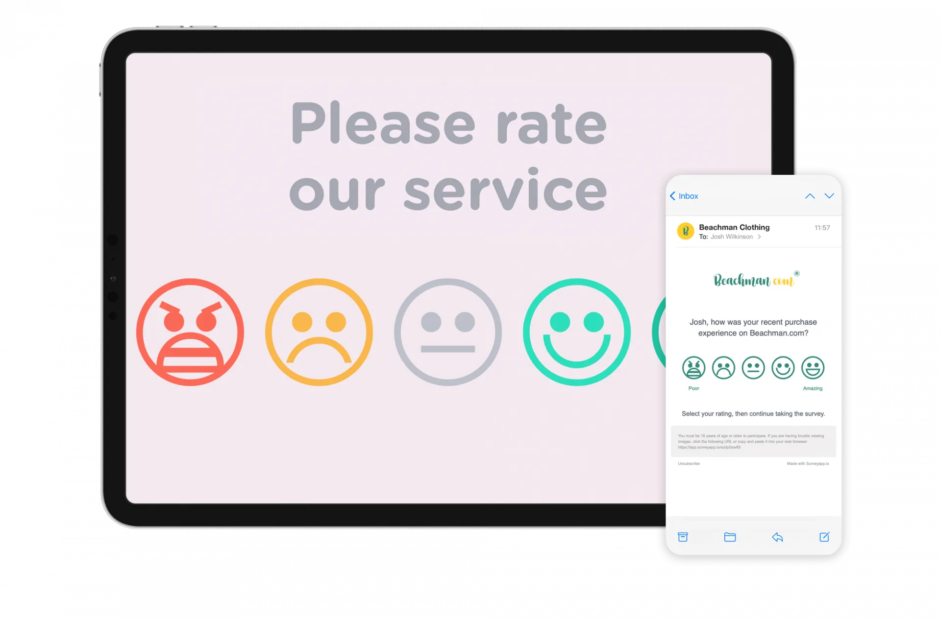 Surveyapp is designed to be as flexible as you are. Because it supports various channels, multiple devices and all languages, how you ask your CSAT questions is in your hands.