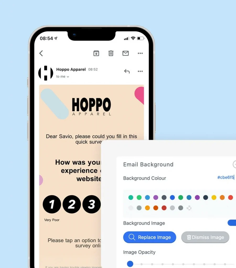 Surveyapp makes customising your email survey a breeze. Add your logo, choose a different language, or write your own thank you message. Redirect respondents to a custom URL once the survey is completed to continue engaging with content on your website.