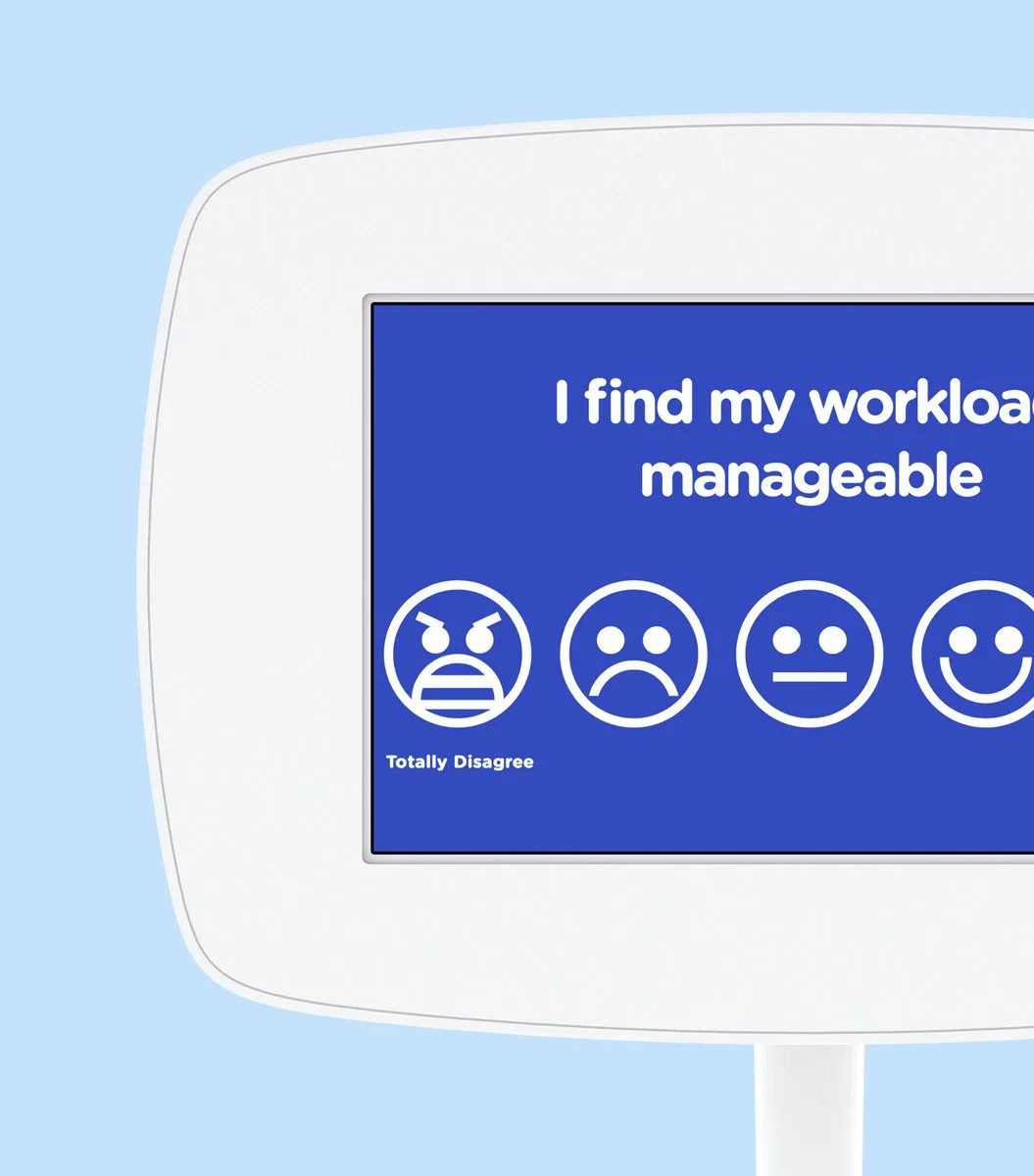 No matter how big or small your organisation, Surveyapp scales with you – from pulse surveys and on-site QR codes, to always-on survey terminals.