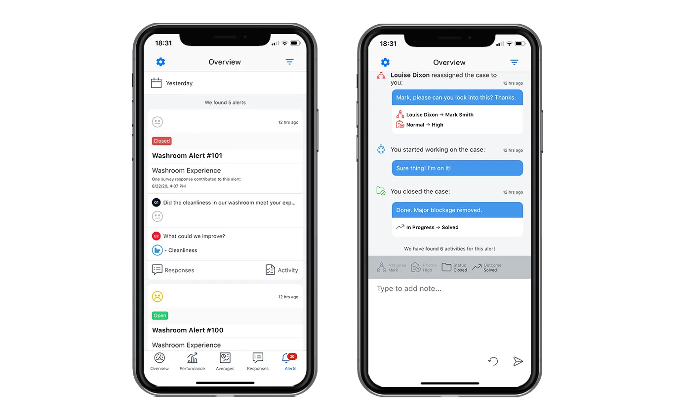 Get real-time feedback and alerts on the things that matter to you with our app push notifications. Find the key insights you need at any time and collaborate with your team on urgent issues flagged up, with our case management system – built right into the Surveyapp Manager app.