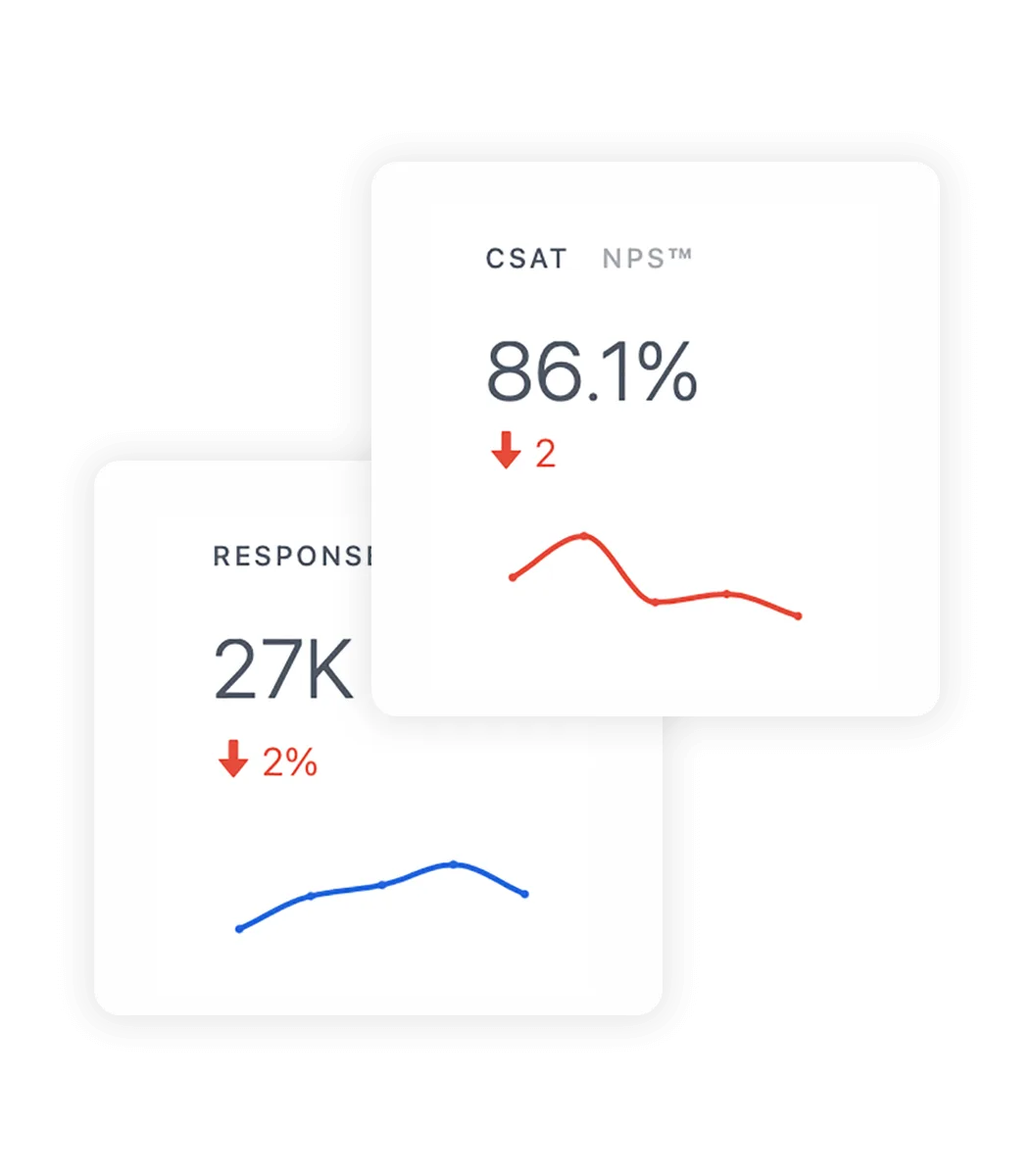View KPIs generated by your surveys such as NPS (Net Promoter Score), CSAT Score (Customer Satisfaction Score), eNPS (Employee Net Promoter Score) etc in real-time.
