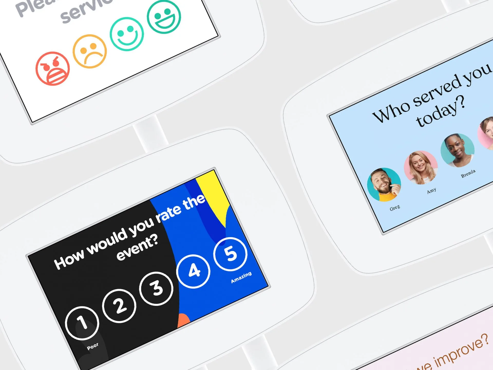 Something not right? Unlike fixed-button survey terminals, Surveyapp lets you ask follow-up questions.
